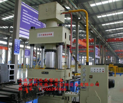 沖孔采用4柱式結(jié)構(gòu),另配加強(qiáng)孔沖孔機(jī)構(gòu)1套,沖孔模具采用6孔式結(jié)構(gòu),三波通用,沖頭采用螺栓緊固,配獨(dú)立油壓系統(tǒng),電機(jī)功率7.5KW,一工位,帶油壓冷卻風(fēng)扇,油缸直徑¢180mm,型程70mm,四柱結(jié)構(gòu),機(jī)座采用鋼板焊接時(shí)效處理。